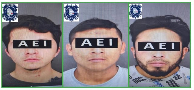Los detenidos son: Jesús Vicente C., Benito J. S., y José Ricardo M. A., de 28, 20 y 19 años de edad respectivamente, a quienes en las próximas horas se les formulará imputación.