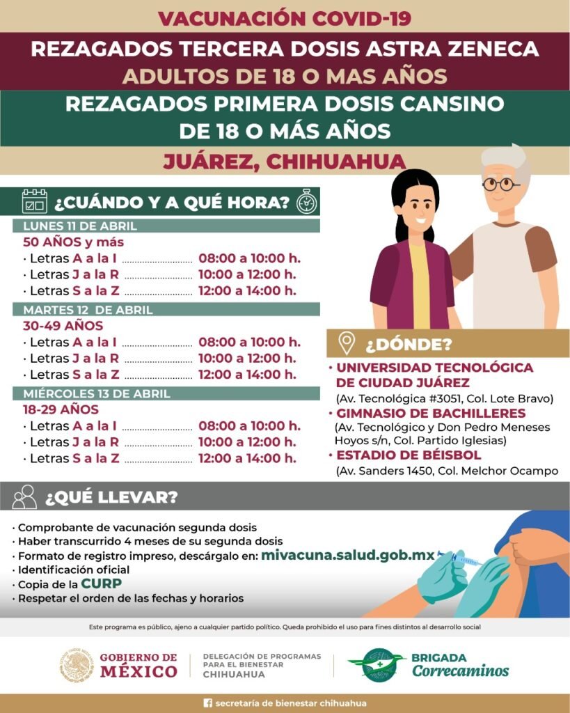 Como parte de la campaña nacional “Más vale tarde que nunca” ¡Todas y todos a vacunarse!, que consiste en extender el operativo de vacunación durante el mes de abril, la Brigada Correcaminos en el Estado de Chihuahua comenzó las jornadas en la capital y Nuevo Casas Grandes.