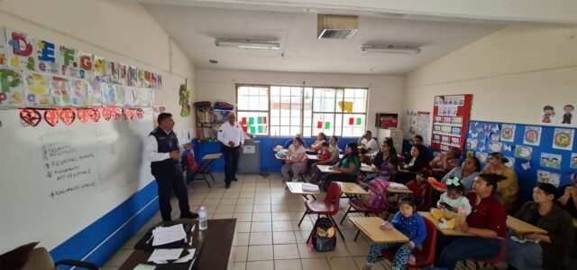 Con el objetivo de conformar una brigada escolar que durante los horarios de entrada y salida de clases coadyuve en el resguardo de la seguridad vial de los estudiantes, maestros y padres de familia de la Escuela Primaria Guadalupe Victoria, personal de la Coordinación General de Seguridad Vial impartió hoy una capacitación a 26 paterfamilias.
