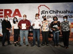 Juan Carlos Loera, candidato a gobernador de la coalición Juntos Haremos Historia en Chihuahua, firmó compromisos para el progreso de 18 mil familias de...
