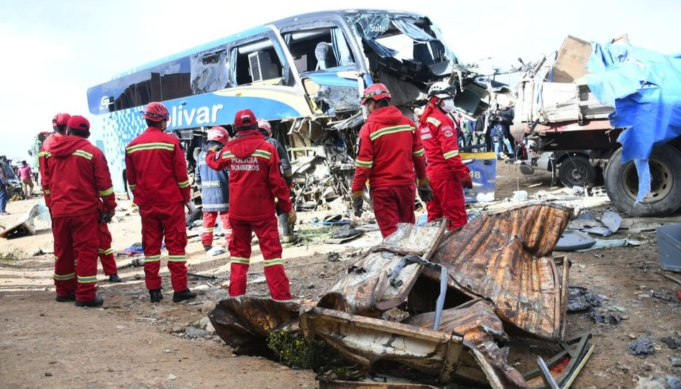 LA PAZ- Al menos siete personas fallecieron y 18 resultaron heridas hoy miércoles en un choque entre un autobús de pasajeros y dos camiones de carga, en la carretera que une los departamentos bolivianos de La Paz y Oruro,...