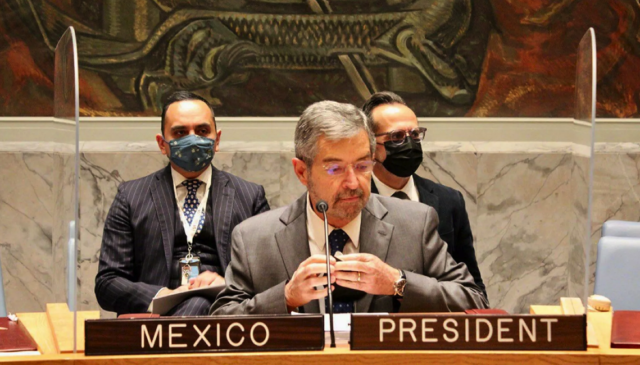 Durante su intervención ante el Consejo de Seguridad de las Naciones Unidas, el diplomático mexicano aseguró que la escalada de tensiones en Europa del Este representa una amenaza potencial para la paz y la seguridad internacionales.