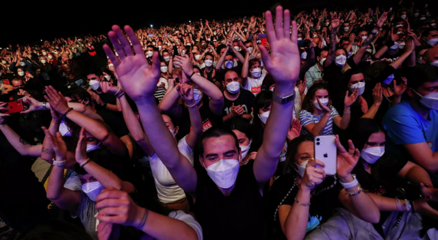 El concierto del popular grupo de rock Love of Lesbian busca “establecer un nuevo protocolo para la celebración de eventos en el contexto actual”, afirman los organizadores. Unas 5 mil personas que acudieron al evento tenían que llevar mascarillas FFP2 y hacerse un test rápido de COVID-19 unas horas antes del concierto.