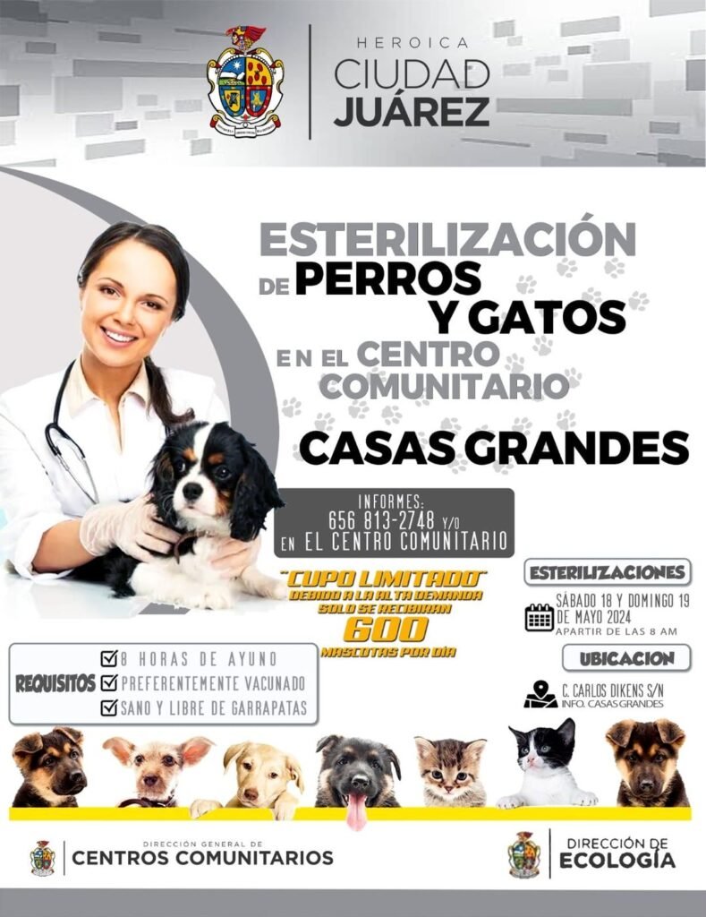 Con el objetivo de disminuir la sobrepoblación de perros y gatos sin hogar, así como contribuir a la salud pública, la Dirección General de Centros Comunitarios y la Dirección de Ecología, esterilizarán a mascotas este 18 y 19 de mayo.