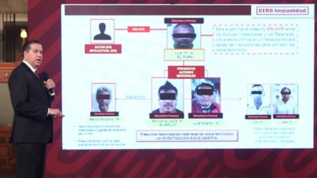El funcionario comentó el seguimiento al caso del doble feminicidio de Gladys Merlín y Carla Enríquez, ocurrido en Cosoleacaque, Veracruz, el 15 de febrero de 2021. Por ello, fue capturado Luis “N”, quien fue vinculado a proceso penal, es copartícipe y es el sexto detenido por estos hechos.