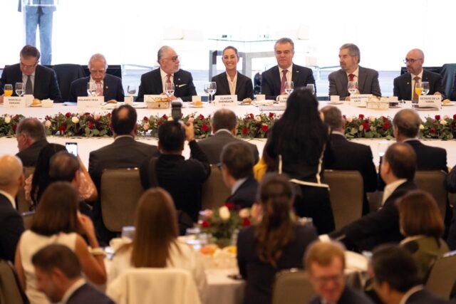 Acompañaron a la virtual Presidenta electa integrantes de su equipo como Juan Ramón de la Fuente, responsable titular del Equipo de Transición; Marcelo Ebrard, Altagracia Gómez, Mario Delgado y José Merino; mientras que del Consejo Ejecutivo del CCE estuvieron presentes Alejandro Malagón Barragán, presidente de CONCAMIN; Octavio de la Torre, presidente de CONCANACO; Rolando Vega, presidente del Consejo Mexicano de Negocios; Juan Patricio Riverol, presidente de la AMIS; José de Jesús Rodríguez, presidente de CANACO CDMX; Máximo Bedolla, presidente de CAINTRA Nuevo León; Guillermo Zamarripa, presidente de AMAFORES; Diego Cosio, presidente de ANTAD; Héctor Larios, representante de COPARMEX; Sergio Contreras; Eduardo Osuna, representante de la Asociación de Bancos de México; y Luis Fernando Haro, representante del Consejo Nacional Agropecuario.