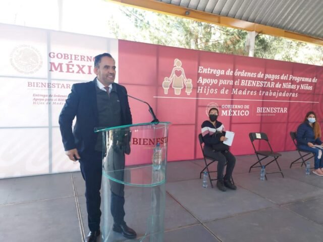 Al encabezar la entrega de órdenes de pago para beneficiarias del programa de Apoyo para el Bienestar de las Niñas y Niños, Hijos de Madres Trabajadoras, en donde estuvo acompañado del delegado regional de Chihuahua, Marcelino Gómez Brenes.