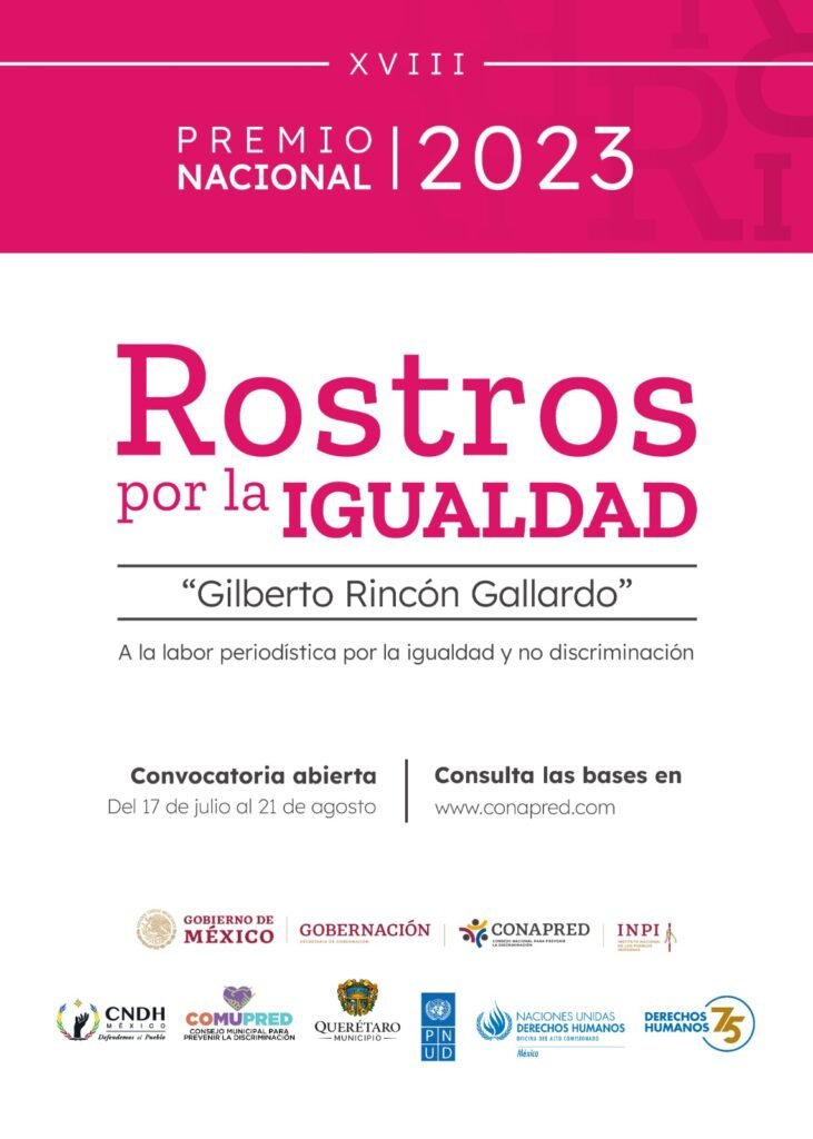 El Consejo Municipal para Prevenir la Discriminación (COMUPRED) en Ciudad Juárez, participa en la organización del premio nacional “Rostros por la Igualdad, Gilberto Rincón Gallardo”, el cual lanzó su convocatoria este día para reconocer la labor periodística y de los medios de comunicación en su compromiso con la promoción de la inclusión social y la visibilización de expresiones y prácticas discriminatorias.