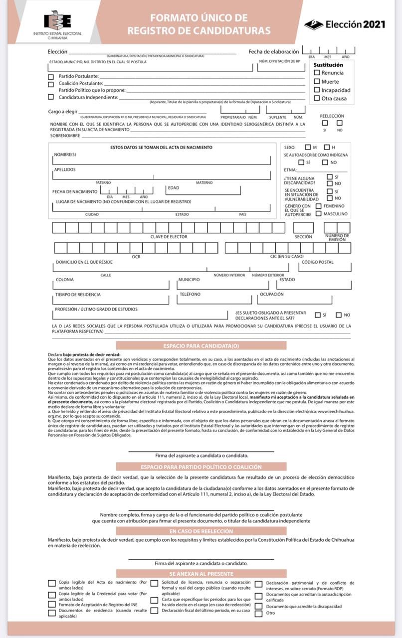 a. Que he leído y entiendo el aviso de privacidad del Instituto Estatal Electoral relativo a este procedimiento, publicado en la dirección electrónica: www.ieechihuahua. org.mx, por lo que acepto su contenido.