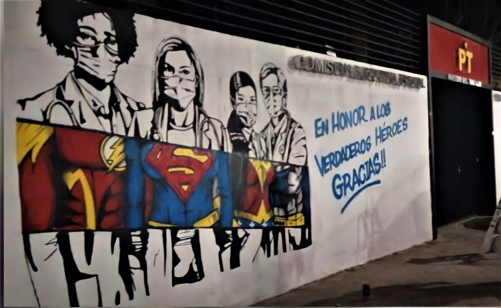 Con mural, homenajea PT a personal médico