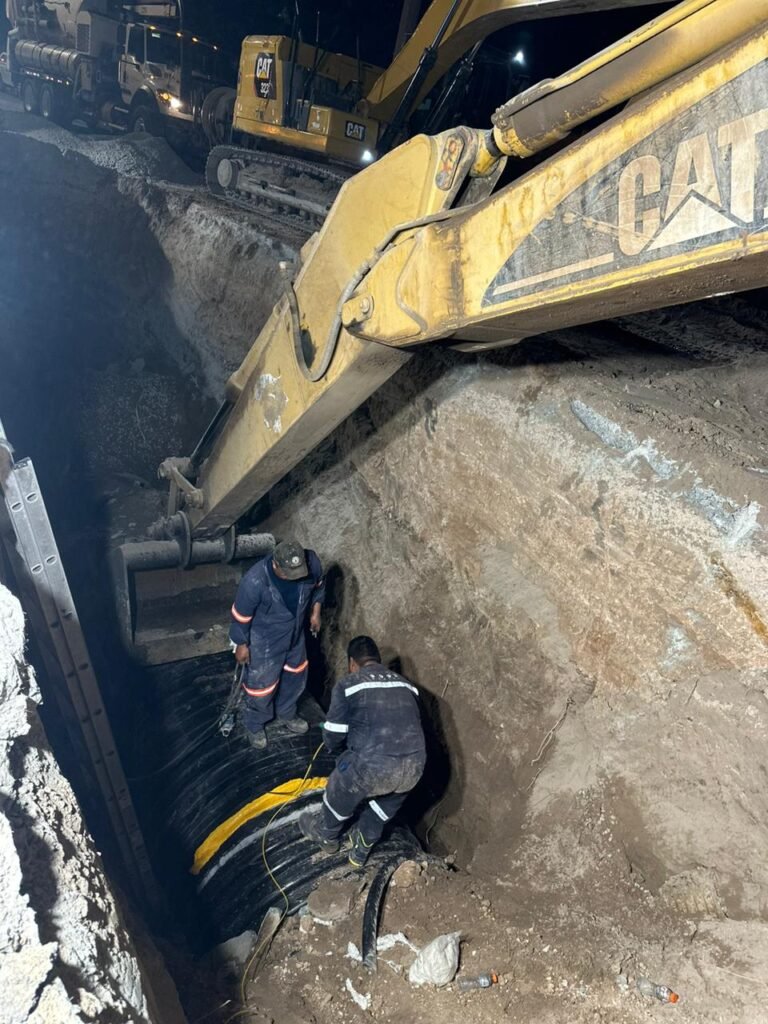 En menos de 18 horas, personal de la J+ realizaron las labores de cierre de vialidades, apertura de concreto, “encamizado” de la tubería del colector.
