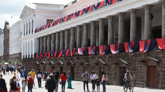 El acto en el que participó el presidente Lasso tuvo lugar en la plaza de la Independencia, situada en el centro histórico, contigua al Palacio de Carondelet, edificio sede del gobierno.