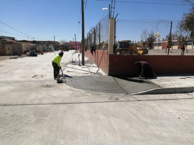 Como parte de los trabajos de pavimentación a base de concreto hidráulico en las calles Eslovenia, Lenin, China y Felipe Ángeles, la Dirección General de Obras Públicas del Municipio actualmente lleva a cabo la construcción de banquetas en dichas vialidades.