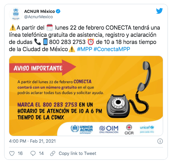 El Alto Comisionado de las Naciones Unidas para los Refugiados también habilitó el número telefónico 800 283 27 53 para que los solicitantes soliciten ayuda durante el registro.