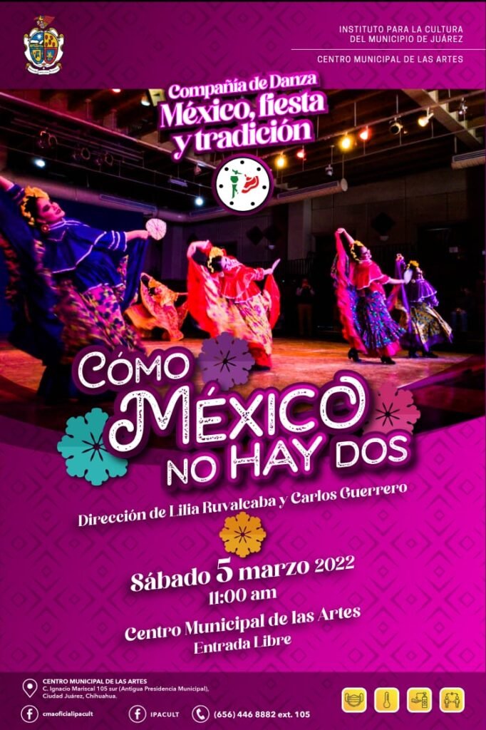 En el escenario del Centro Municipal de las Artes (CMA) la compañía de danza folklórica México Fiesta y Tradición llevará a cabo su segunda presentación de esta temporada 2022, con el espectáculo “Cómo México no hay dos”.