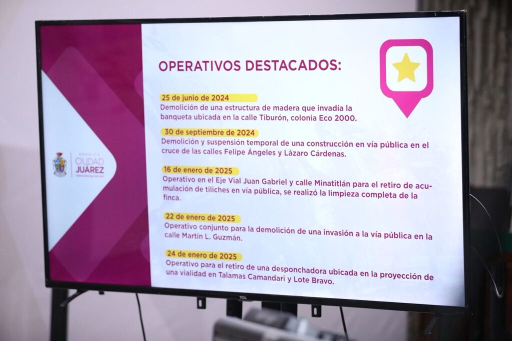 Por su parte, la titular de Desarrollo Urbano informó que del año 2024 a la fecha se han realizado nueve demoliciones de construcciones irregulares, 79 retiros de objetos y estructuras de la vía pública, 25 liberaciones de espacios públicos y el retiro de más de 40 puestos comerciales.