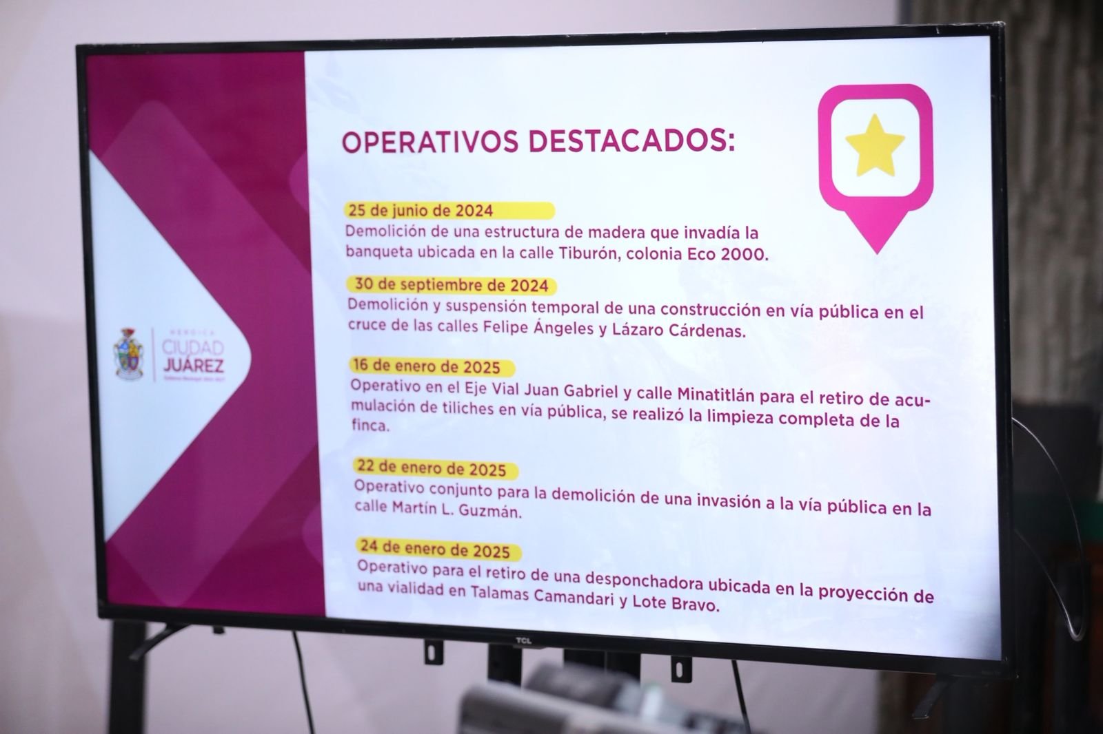 En conferencia de prensa, la directora general de Desarrollo Urbano, Claudia Verónica Morales Medina; el director de Limpia, Gibran Solís Kanahan y el director de Administración de Desarrollo Urbano, Francisco Rodríguez, informaron que estas acciones se llevan a cabo por instrucción del Presidente Municipal, Cruz Pérez Cuéllar, a través de una mesa de trabajo interinstitucional en la que participan diversas dependencias.