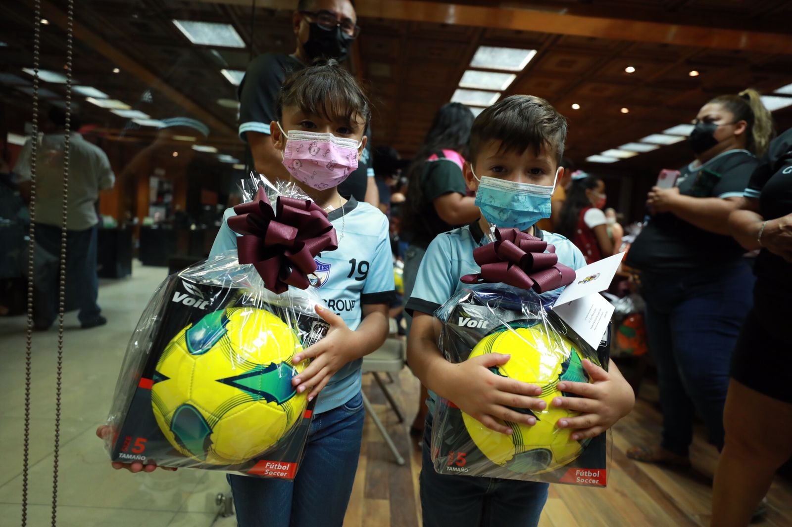 Al final de la reunión, el alcalde entregó balones a los niños que acudieron a las instalaciones de la Presidencia Municipal.