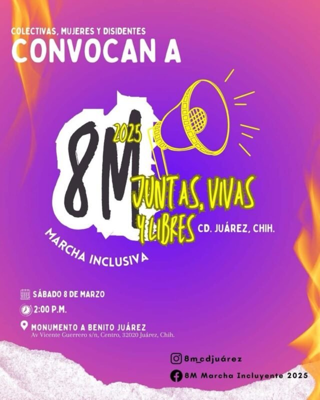 Es por eso que aquí en Ciudad Juárez no será la excepción ya que contará con distintos puntos de concentración organizados por colectivos feministas, grupos universitarios y Madres Buscadoras.