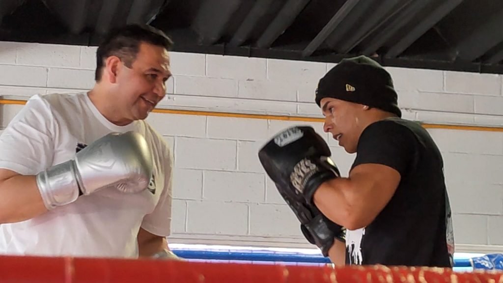 Pérez Cuéllar, saludo a todos los deportistas que esa tarde entrenaban en la escuela de box Liderac, donde se preparan todos los días con las medidas de higiene impuestas por la pandemia de Covid-19.