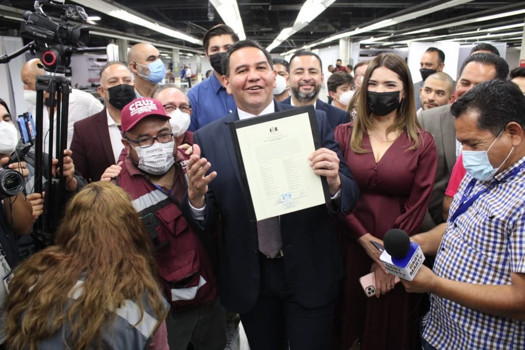 Al mediodía de este viernes, Cruz Pérez Cuéllar, candidato de la coalición Juntos Haremos Historia en Chihuahua (Morena-PT-Nueva Alianza) recibió del Instituto Estatal Electoral (IEE) la constancia de mayoría que lo acredita como alcalde electo de Ciudad Juárez, con lo cual se convertirá en el primer presidente municipal de Morena.