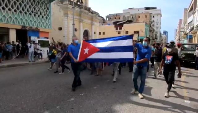 Miles de cubanos salieron a las calles de Cuba desde La Habana hasta Santiago el domingo, en inéditas protestas contra el gobierno, frustrados por meses de crisis, restricciones sanitarias y lo que acusaron era negligencia de las autoridades.