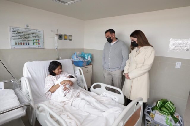 Luego, el alcalde y su esposa visitaron al primer varón que nació en el Hospital de la Mujer este 2023, Emmanuel Guel Espejo, segundo hijo de Nancy Espejo Reyes, de 18 años y Rodrigo Guel Trujillo, de 19 años, quien nació a las 4:56 horas de la madrugada, con un peso de 3 kilos 300 y midiendo 55 centímetros.