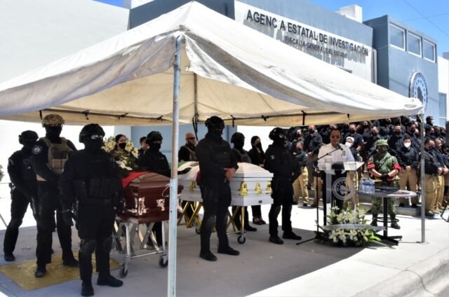 “Los compañeros Chávez y Perera siempre actuaron de manera ejemplar, mantuvieron un expediente limpio, con la convicción de trabajar por proteger la vida, la libertad y el patrimonio de los chihuahuenses; por eso es que honraremos sus memorias”, expresó el Fiscal General, Roberto Javier Fierro Duarte.
