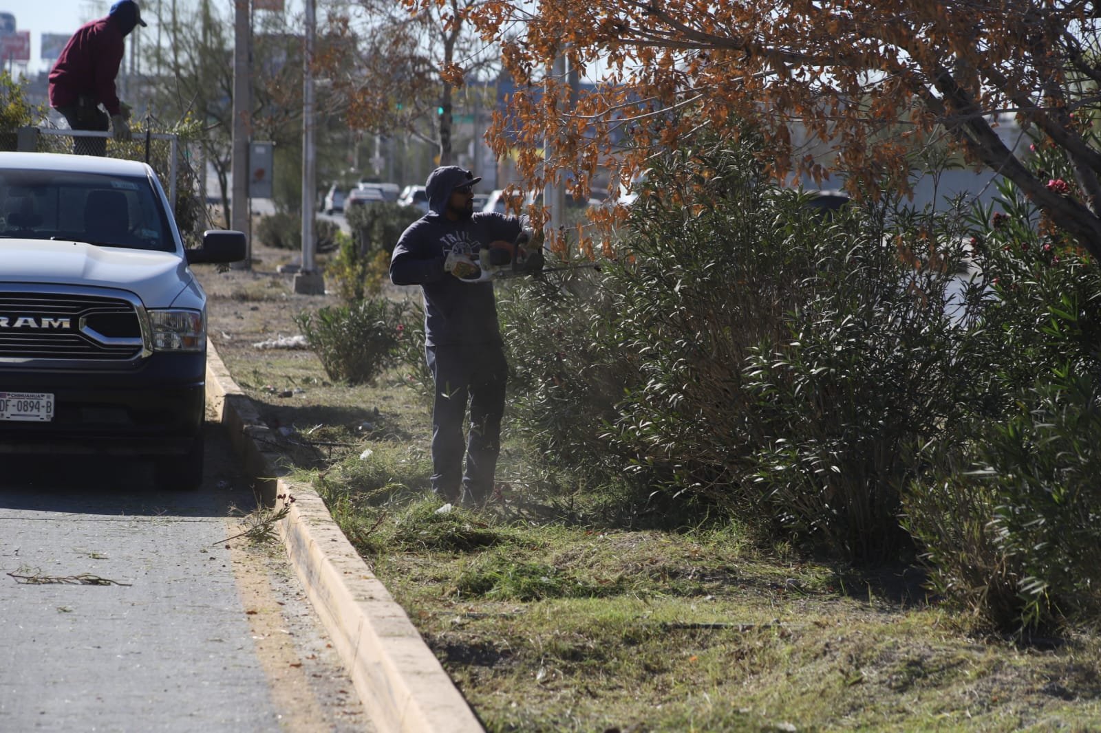 Daniel Zamarrón Saldaña, titular de la dependencia, indicó que las acciones se llevan a cabo en el tramo de la avenida Teófilo Borunda a la calle Cesáreo Santos, donde se realizan tareas de limpieza general, corte de hierba, poda formativa de árboles, así como el retiro de basura y de los productos resultantes del corte y la poda, con el objetivo de mantener áreas verdes ordenadas, seguras y en mejores condiciones.