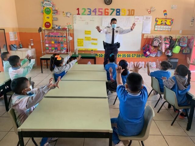Personal de Educación Vial de la Coordinación General de Seguridad Vial ofreció la plática Alumno Vial a 43 estudiantes del Jardín de Niños Helen Adams Keller, ubicado en Calle Cañón de Urique s/n, en el Fraccionamiento Villas Residencial Del Real.