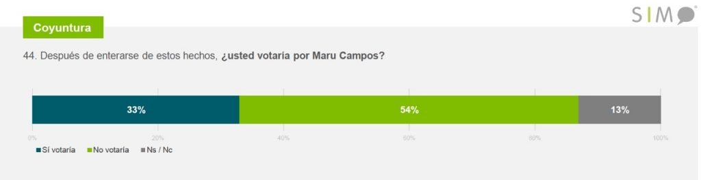 Entre este 66% que mencionaron haber escuchado la noticia, es decir dos de cada tres encuestados, el 54% declara que luego de enterarse de esto, no estarían dispuestos a avotar por la candidata del PAN-PRD.