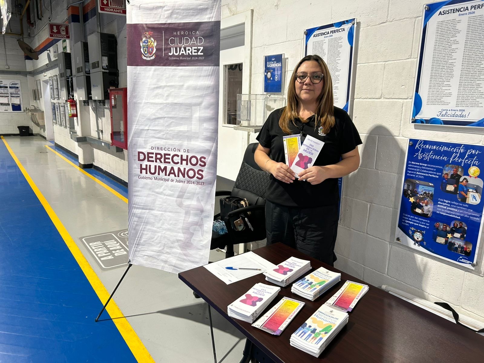 La Dirección de Derechos Humanos del Municipio realizó una jornada informativa en la empresa Norma Group, turno vespertino, con el objetivo de acercar información y orientación sobre derechos humanos a las personas que laboran en la industria maquiladora.