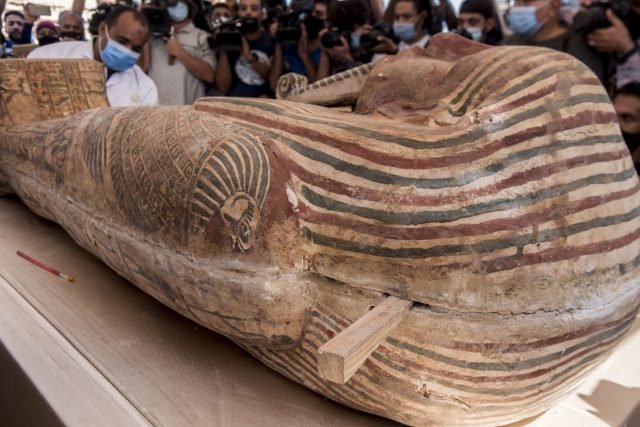 De las excavaciones realizadas con las medidas sanitarias por la Covid-19, un grupo de excavadores liderados por el dr. Mustafa Waziri, secretario general del Consejo Supremo de Antigüedades, hallaron desde agosto los pozos funerarios de los que han extraído 59 sarcófagos hasta la fecha, todos de madera y sellados, con cuerpos momificados en buenas condiciones, además de 28 estatuas de la deidad Ptah Sukkar y muchas otras del panteón egipcio. Hasta el momento se cree que los sarcófagos contienen los restos de sacerdotes, estadistas y grandes personalidades de la 26a dinastía egipcia.