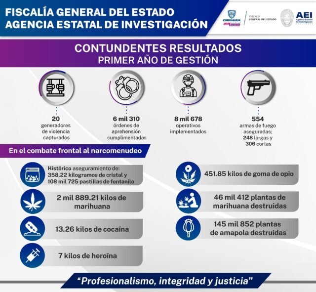 Tan solo en este periodo, Policías adscritos a la Fiscalía General del Estado de Chihuahua han logrado la captura de más de 20 generadores de violencia, considerados líderes delincuenciales, pertenecientes a diferentes grupos criminales.