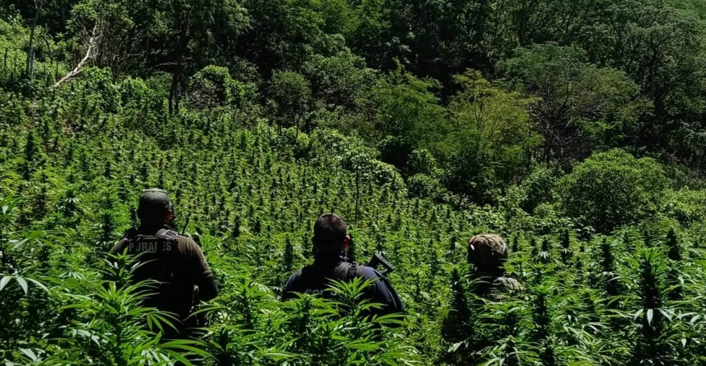 La Secretaría de Seguridad Pública del Estado (SSPE), realizó la destrucción de un plantío de marihuana, la inhabilitación de un campamento presuntamente utilizado por grupos delictivos y la neutralización de seis artefactos explosivos de manufactura casera.
