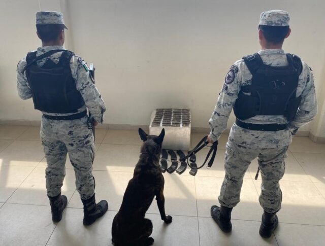 El aseguramiento se realizó en el municipio de Guadalupe, Nuevo León, donde guardias nacionales ingresaron, previa autorización y con apoyo de un binomio canino, para efectuar inspecciones aleatorias a diversos paquetes, en busca de narcóticos, armas de fuego, explosivos u objetos ilícitos.