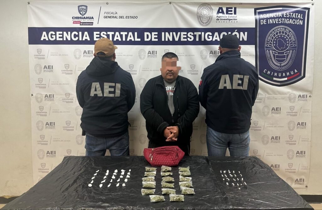 Elementos de la Agencia Estatal de Investigación de la Fiscalía de Distrito Zona Norte, detuvieron en flagrancia a un presunto distribuidor de narcóticos al menudeo, cuando deambulaba por la colonia Chihuahua, en Ciudad Juárez.