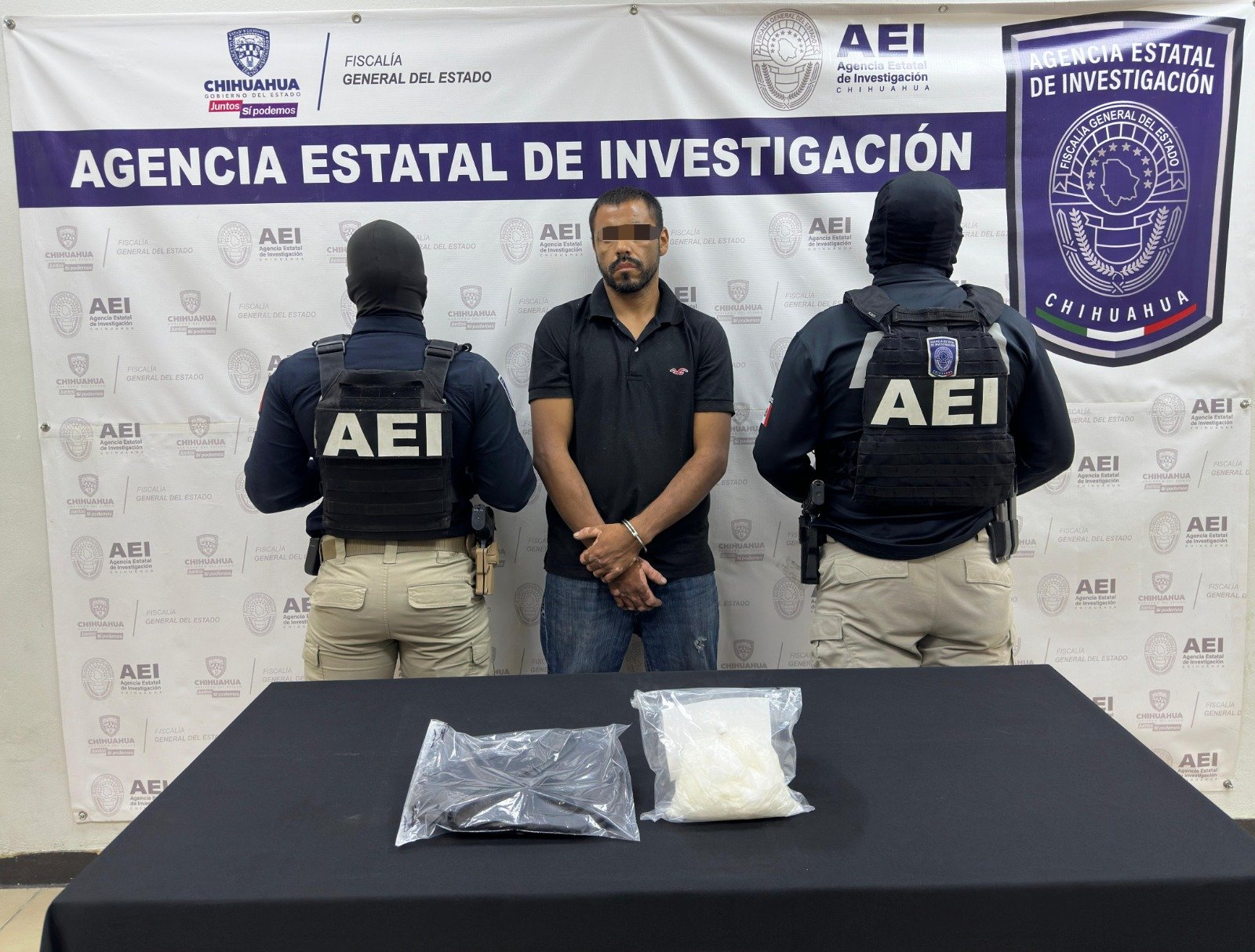 Elementos de la Agencia Estatal de Investigación, adscritos al Centro de Operaciones Estratégicas (COE), de la Fiscalía de Distrito Zona Norte, detuvieron a quien se identificó como Jesús A. S., por delitos contra la salud, cometido en el fraccionamiento Misiones de Creel en Ciudad Juárez.