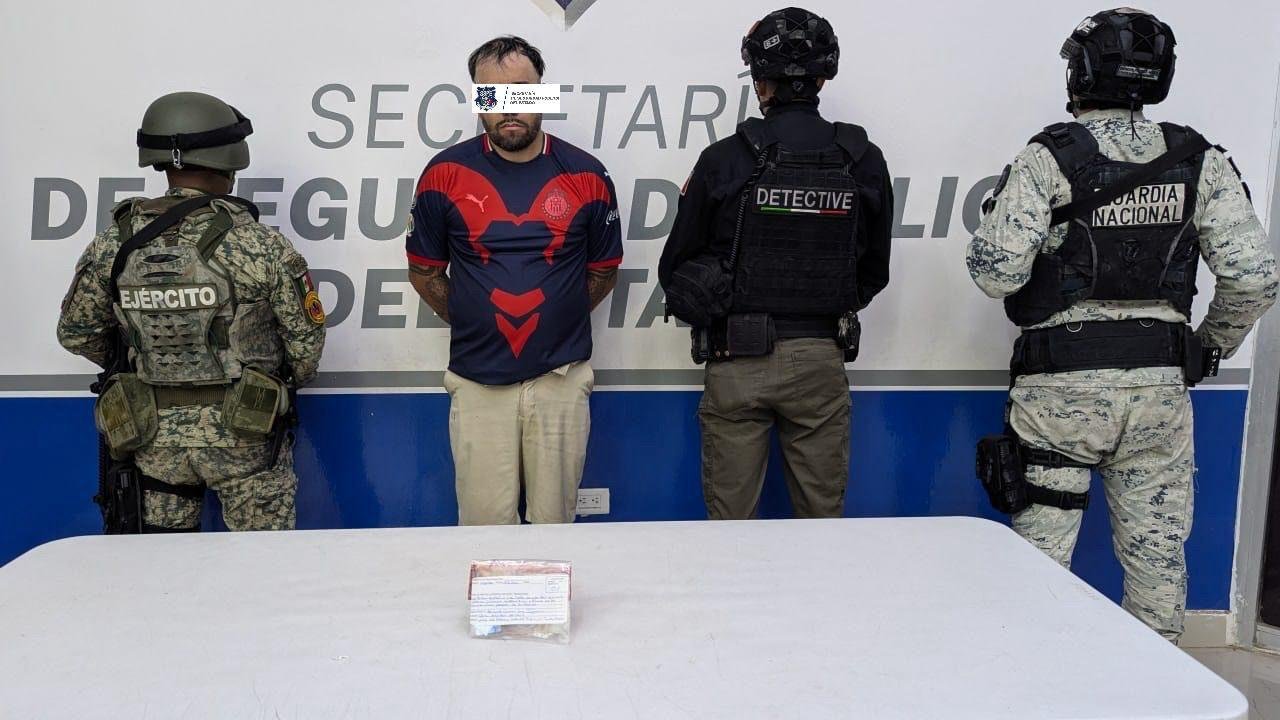 Al momento de su detención, se le localizaron entre sus pertenencias envoltorios de una sustancia con características propias de la cocaína. Cabe destacar que, de acuerdo con los trabajos de inteligencia, tanto el detenido como el vehículo coinciden plenamente con las descripciones vinculadas a hechos violentos recientes en la ciudad.