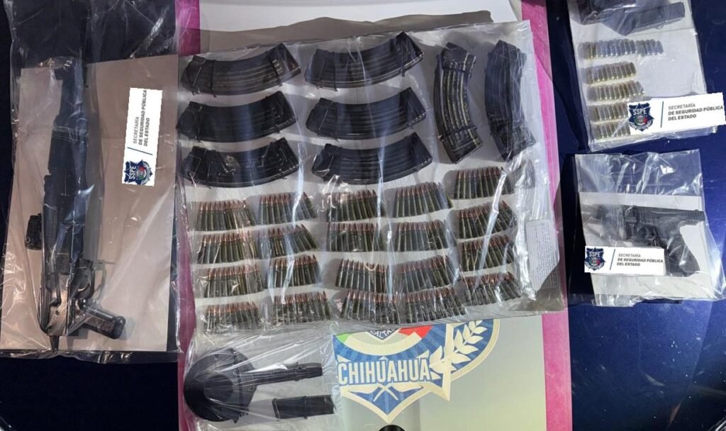 Asimismo, al interior del vehículo se localizó un arma larga tipo fusil, además de diversos cargadores abastecidos, además de un cargador de tambor también abastecido.