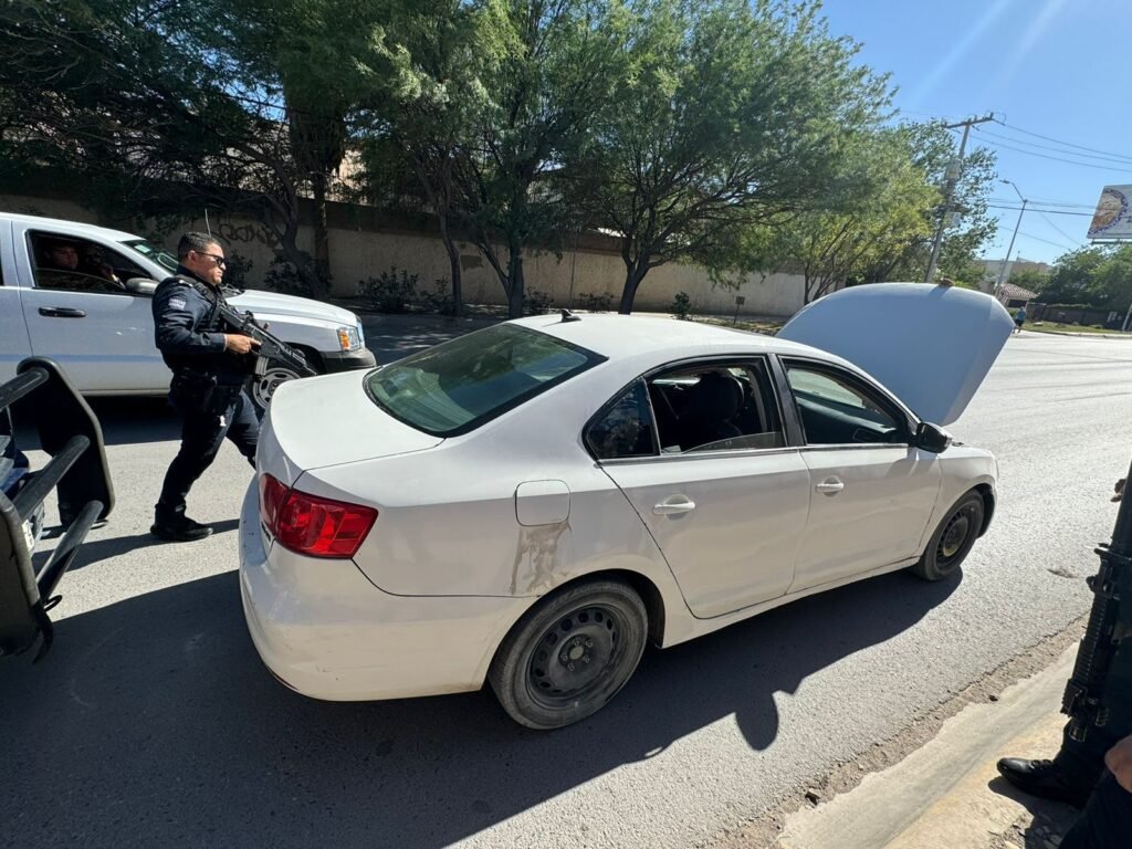 Agentes municipales que realizaban labores de prevención y vigilancia en el fraccionamiento Valle del Sol, atendieron un llamado recibido al número de emergencia 911, donde reportaron el robo de un vehículo con violencia en el cruce de la avenida Manuel Gómez Morín y calle Valle Arareco, dando como referencia un automóvil de la marca Volkswagen Jetta en color blanco, modelo 2011.