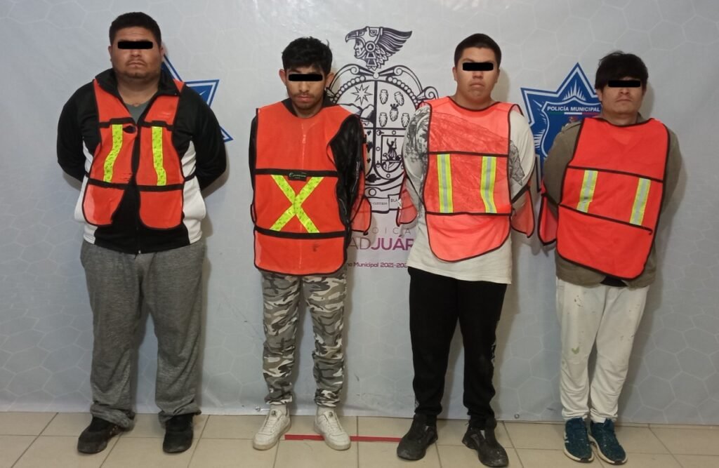 Agentes de la Secretaría de Seguridad Pública Municipal arrestaron a César Alejandro L. R., Carlos Alexis M. R., Obed S. D. y Leonel M. P., por su presunta responsabilidad en la comisión de delitos contra la ley federal de armas de fuego y explosivos, delitos contra la salud y daños a vehículo automotor.