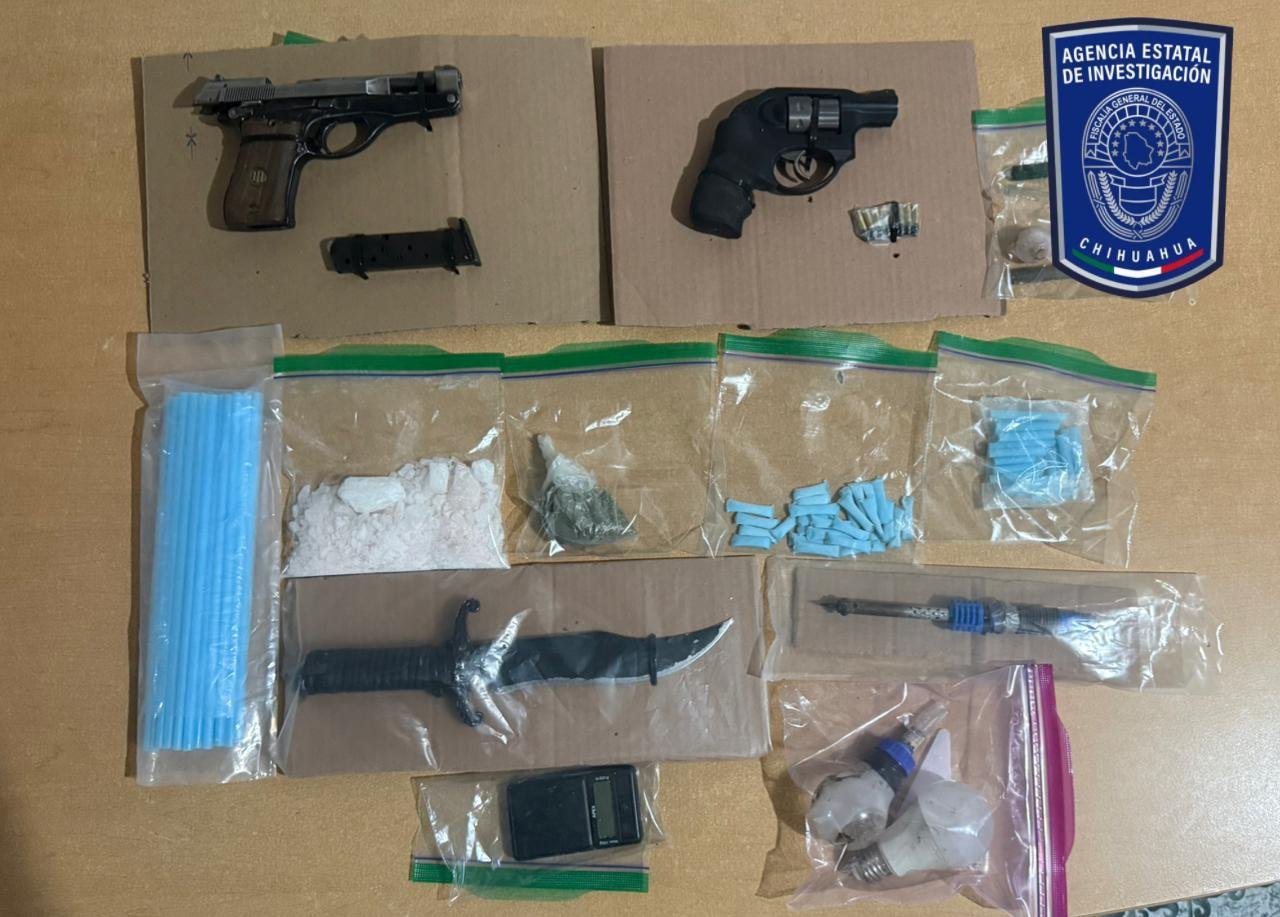 Elementos de la Agencia Estatal de Investigación, adscritos a la Fiscalía de Distrito Zona Noroeste, detuvieron a, Neyba L. M., Daniel Efraín C. A., Yaneth L. L., y Alonso C. F., por portación ilegal de arma de fuego y delitos contra la salud.