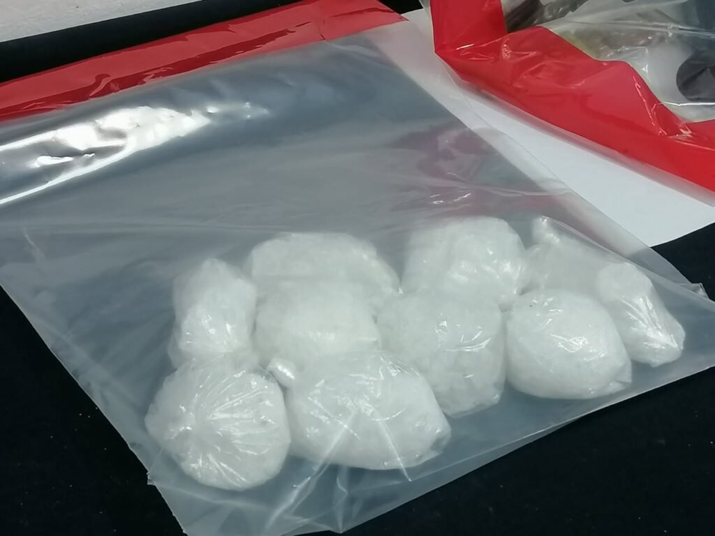 Mientras que, al segundo masculino, identificado como Luis Arturo C. V. de 29 años, se le localizó en la bolsa frontal derecha una bolsa de plástico que contenía nueve envoltorios de plástico, mismos que en su interior contenían una sustancia, conocida comúnmente como cristal, con un peso aproximado de 231 gramos.