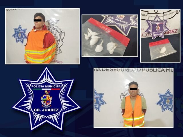 Elementos de la Secretaría de Seguridad Pública Municipal arrestaron a dos personas por su presunta responsabilidad en la comisión de delitos contra la salud.