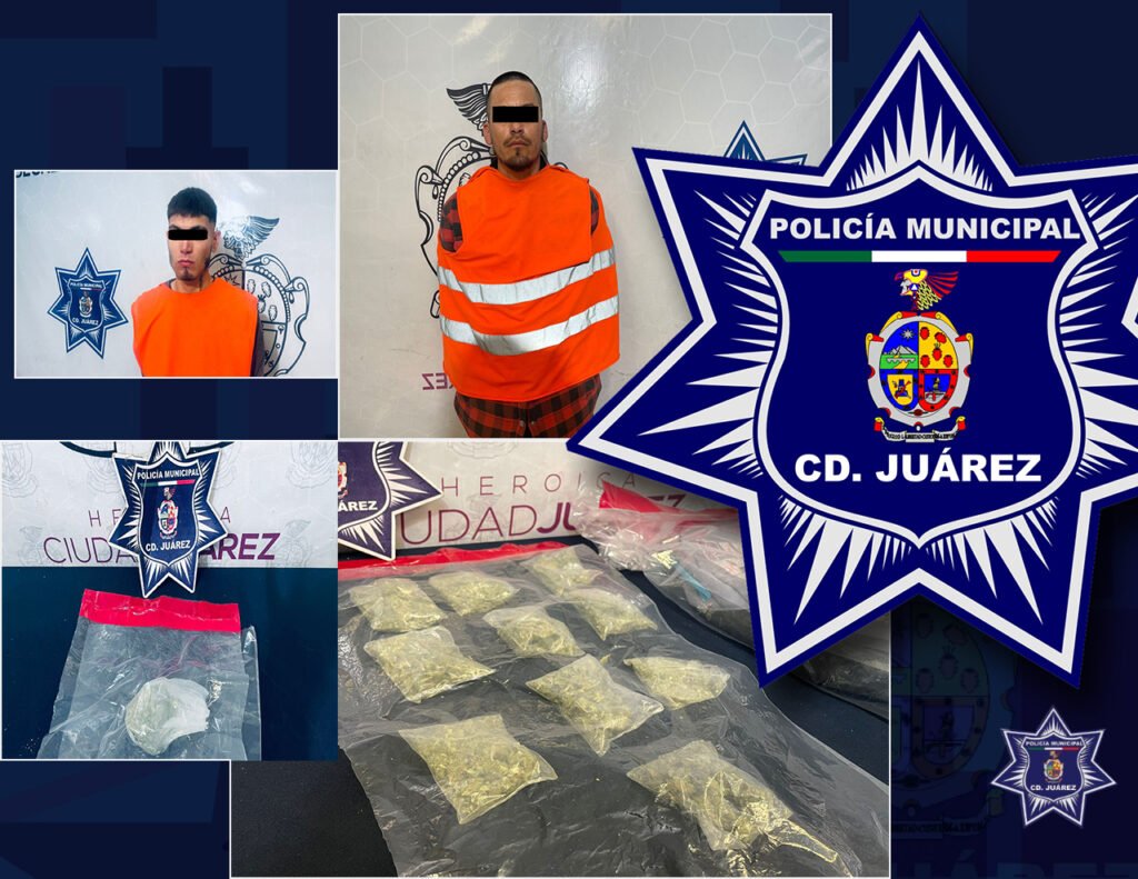 Elementos de la Secretaría de Seguridad Pública Municipal arrestaron a dos personas por su presunta responsabilidad en la comisión de delitos contra la salud.