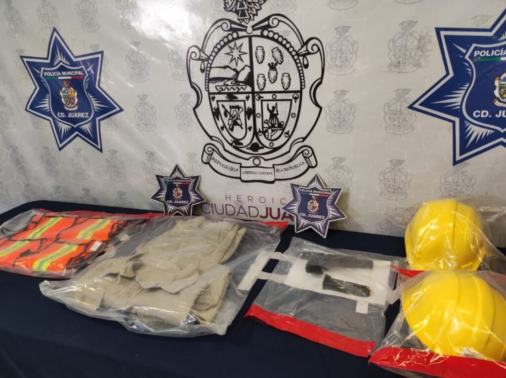 Mientras que en los asientos traseros de la camioneta se les localizó dos cascos en color amarillo, una camisa color caqui con franjas reflejantes, un pantalón color caqui y dos chalecos reflejantes en color naranja.