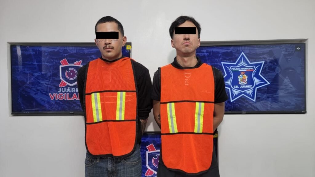 Elementos de la Secretaría de Seguridad Pública Municipal adscritos en la Estación de Policía del Distrito Oriente, capturaron a Emmanuel de la R. V. y Luis Omar C. R., por su presunta responsabilidad en la comisión de delitos contra la ley federal de armas de fuego y explosivos.