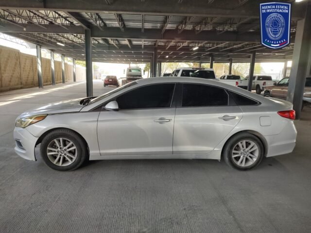 - Vehículo Hyundai Sonata 2016, con placas del estado de Chihuahua