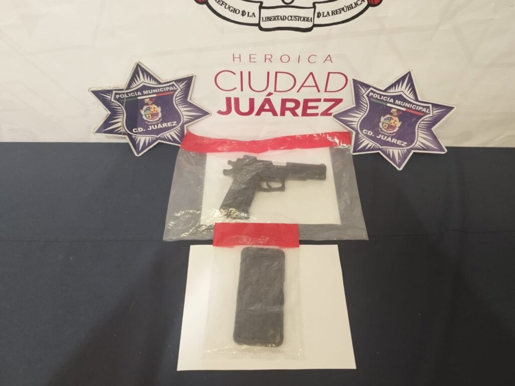 Con los datos obtenidos se implementaron acciones de búsqueda, localizando en el cruce de la calle Octava y bulevar Zaragoza, en la colonia antes mencionada, a un masculino que reunían las características proporcionadas, por lo que fue abordado y al realizarle una inspección preventiva le localizaron el teléfono celular de la víctima y un arma, la cual resultó ser de juguete.